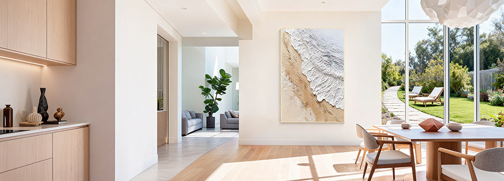 Learn how Wabi-Sabi art complements Japandi interiors. Discover how textured, natural, and imperfect wall art creates calm and modern living spaces.
