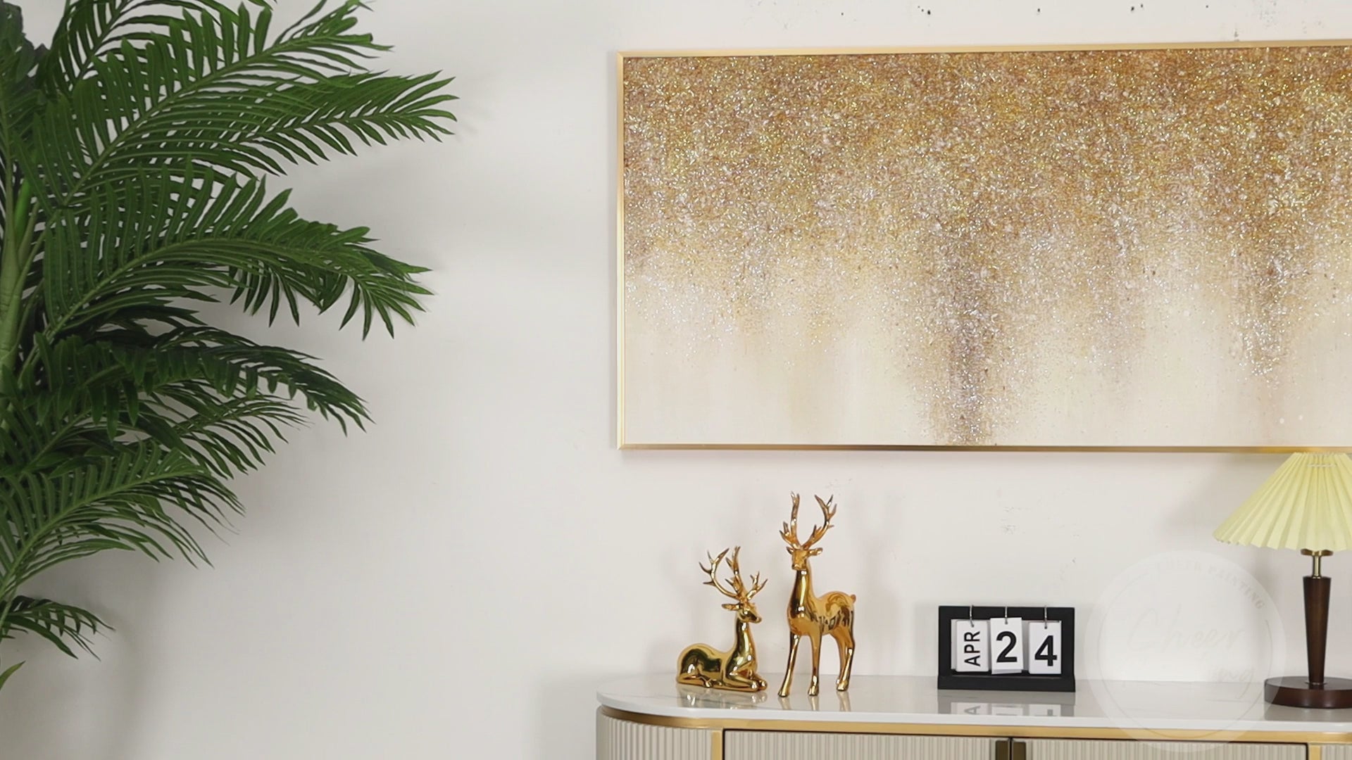 لوحة زيتية تجريدية فنية ذهبية لامعة