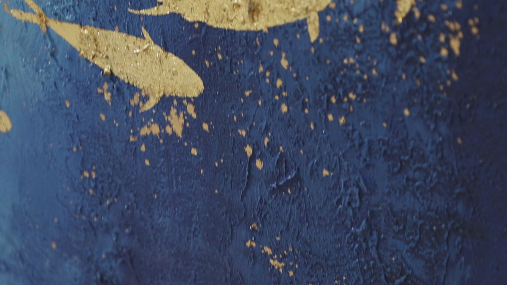 أضف الهدوء والطاقة إلى مساحتك مع لوحة فنية جدارية مرسومة يدويًا على شكل سمكة