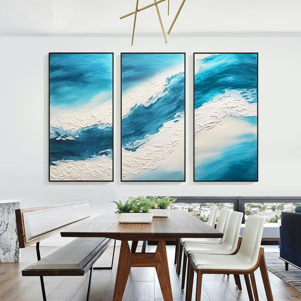 For modern interiors, abstract or textured triptychs in neutral tones work particularly well, as they introduce depth without overwhelming the space. For more expressive interiors, landscapes or ocean-themed triptychs can create a sense of openness and flow.