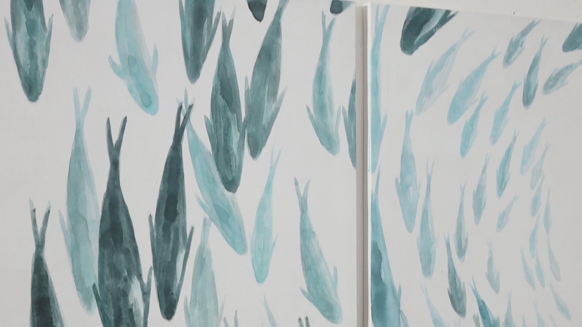 Bringen Sie Ruhe und Energie in Ihren Raum mit handgemalter Fisch-Wandkunst