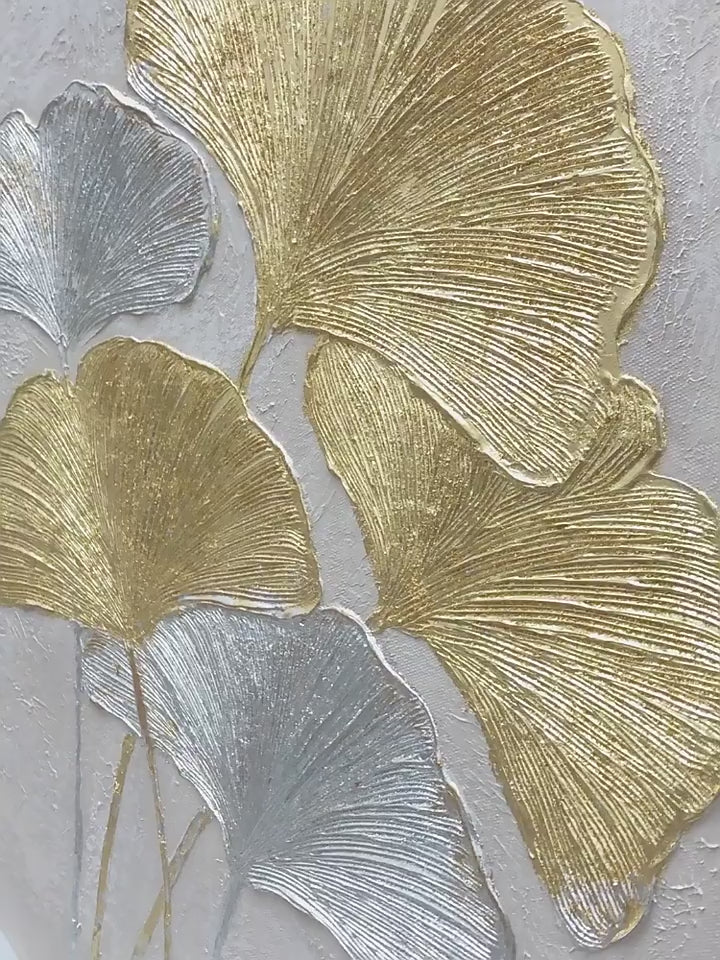 Ginkgo Blätter Malerei Gold Silber Folie Runde Wandkunst