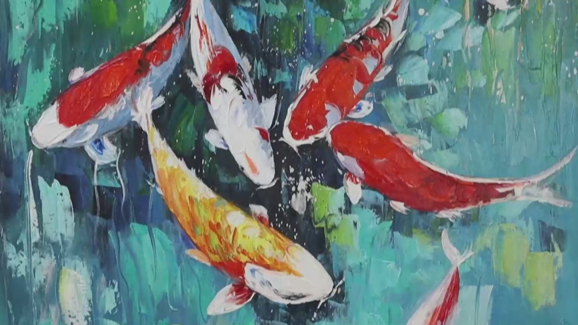 Bunte Koi-Fisch-Wandkunst – Strukturgemälde zur Dekoration