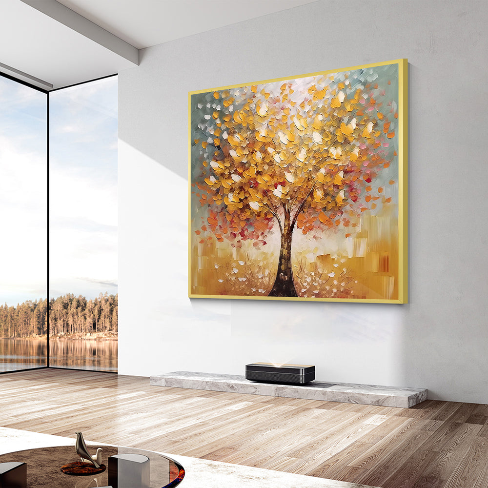 Les pièces texturées Peint à la main intègrent souvent le grain de la toile, des couches de peinture acrylique, et parfois des matériaux mixtes tels que la feuille d'or ou des éléments naturels. Ces composants créent une surface qui semble réelle — non seulement visuellement, mais aussi physiquement.