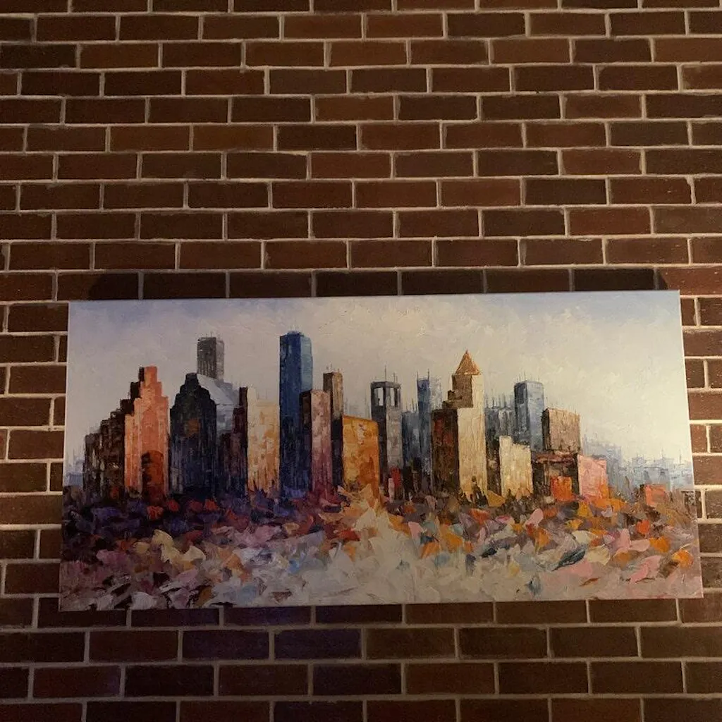 Colorful Skyline Wall Art – Textured Cityscape for Modern Spaces